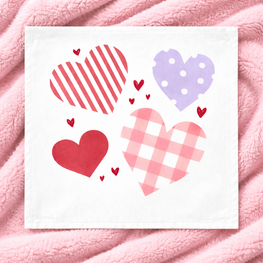 PANEL ONLY: SQUARE Holiday Pure & Simple Aesthetic Classy Clean Boho Heart Cursive Honest Natural Love Winter, Valentine's, Hearts, Red, Purple, Pink, Polk-a-dot, Stripes, Gingham, Plaid: SQUARE HEARTS;