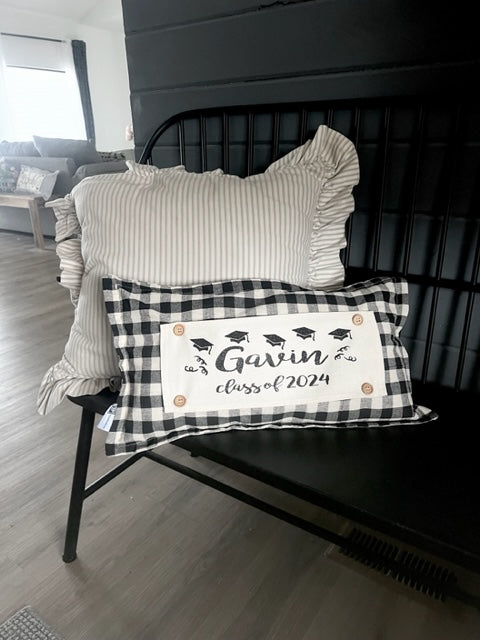 PILLOW ONLY (with fluffy insert): Farmhouse Gray/White Ticking Stripes: RECTANGLE GRAY/WHITE STRIPES TICKING PILLOW (with insert)