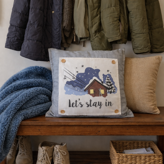 PANEL ONLY: SQUARE Holiday Panel: Christmas Family Winter Tradition Hot Cocoa Snow Wonderland Iceskates Snow Skis Beanie Hat Snow Shoes Ski Poles Entryway SKI BENCH