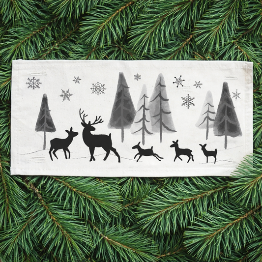PANEL ONLY: RECTANGLE Seasonal Panel: Winter January Decor Peace Forest Timberland Woodland Backwoods Grove Buck Thicket Tree Silent Night Wandering Wonderland DEER