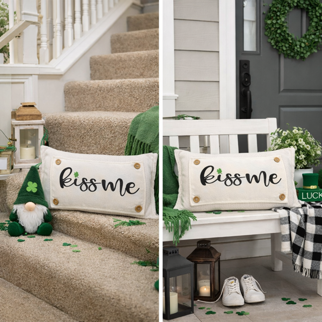 PANEL ONLY: RECTANGLE Glitter Holiday Kiss Me Shamrock. Spring, St Saint Patrick's Day Leprechaun Irish Saying, Luck: KISS ME SHAMROCK