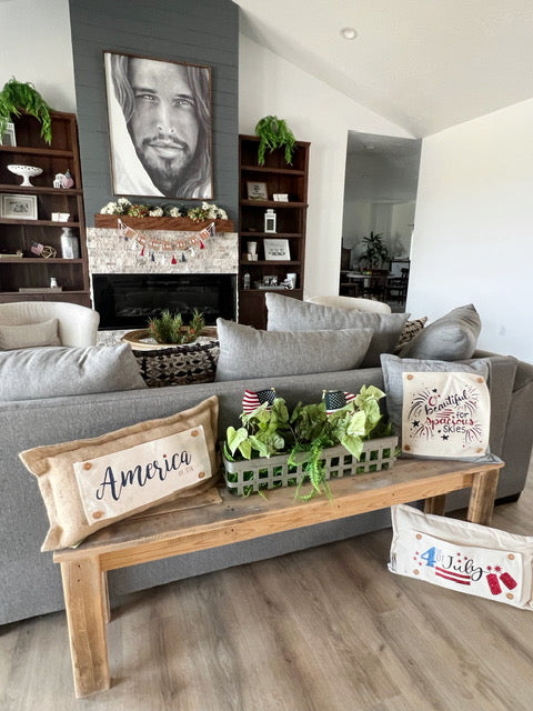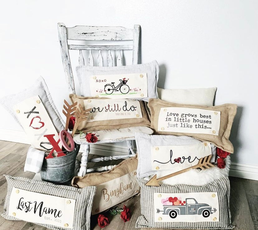 Pillow dimensions: approx. 12" tall x 22" long. So cute on an bench, an old chair, mantel, recliner.. intended for indoor use.