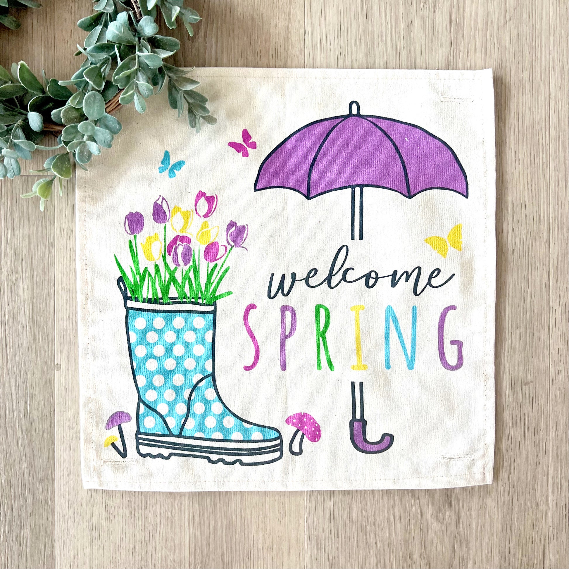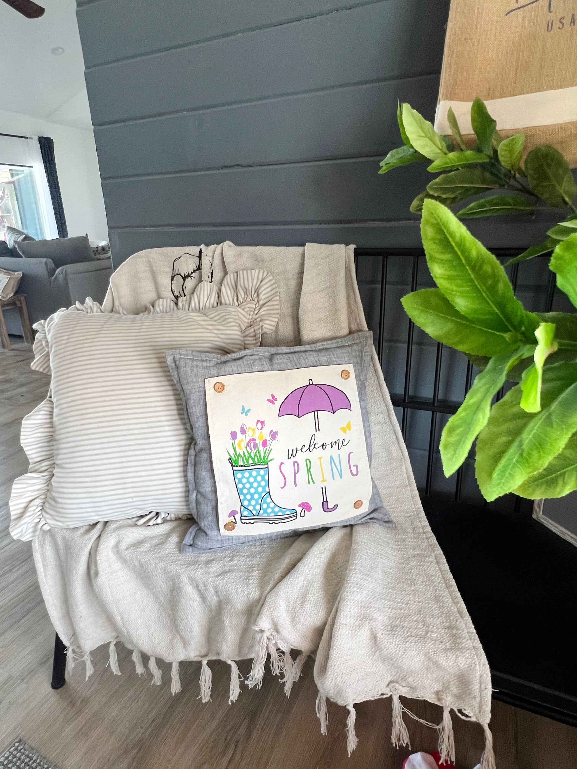 GRAY SQUARE PILLOW, INSERT AND WELCOME SPRING PANEL only.